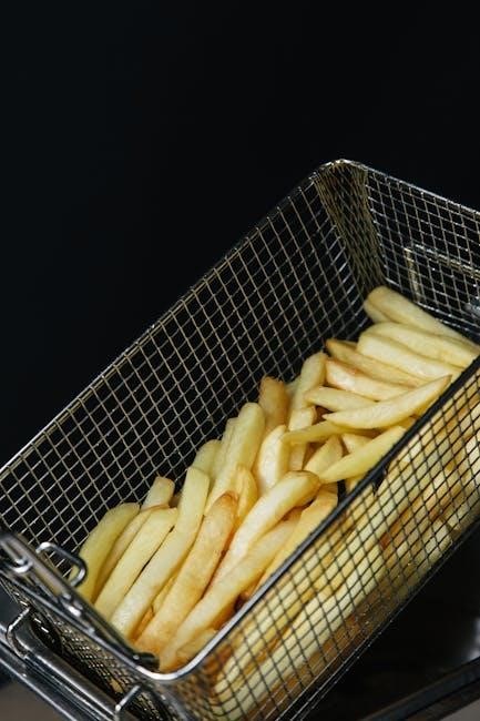 Users will find guidance on utilizing the various cooking functions, optimized for the NeverStick basket. Troubleshooting sections address potential issues related to food sticking, emphasizing proper preheating and oil usage. The PDF also covers cleaning procedures tailored to the NeverStick coating, ensuring optimal performance and extending the lifespan of this innovative air fryer model.